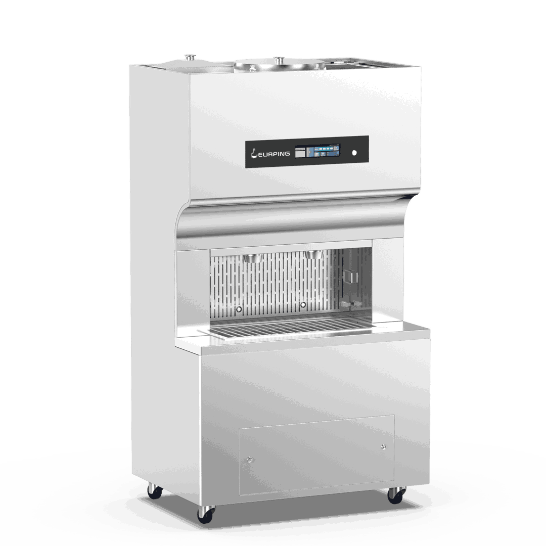 2.1 本装置は軟水を作動媒体として使用し、大流量循環ポンプにより洗浄チャンバー内の水を洗浄配管内で循環させ、スプレーアームを通じてケージを噴射洗浄することで、被洗浄物に対して強力な洗浄効果を発揮します。また、すすぎ工程では、水槽内の清浄な純水を被洗浄ケージに直接噴射し、高いすすぎ性能を実現します。さらに、高温で使用された純水すすぎ水を回収し、次工程の洗浄水として再利用することで、資源の有効活用を図っています。